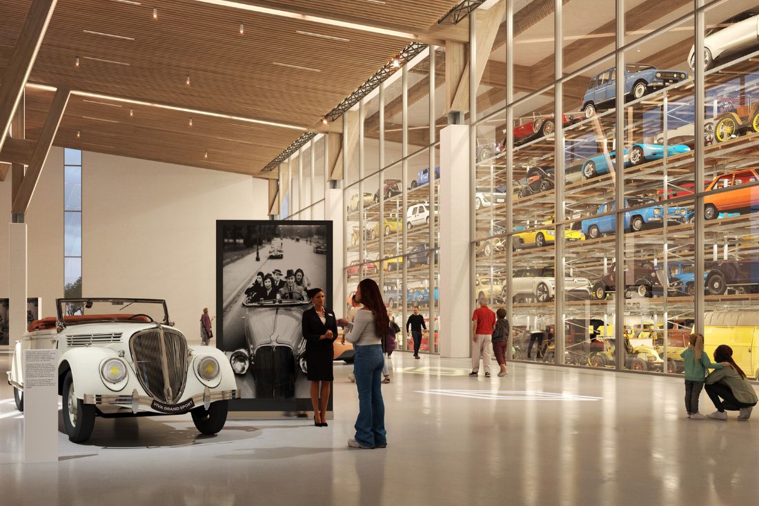 Le site de Flins, qui n’assemble plus de véhicules depuis plusieurs années, abrite désormais la Refactory, un centre de reconditionnement et de recyclage de voitures. C’est à l’entrée de ce site que s’élèvera le futur musée, un édifice de 11 500 m² imaginé par l’architecte Jacob Celnikier. Son design, à la fois minimaliste et ultra-moderne, offrira des espaces variés : une salle événementielle, des ateliers découverte, ainsi qu’une zone dédiée aux archives (affiches, croquis, ouvrages, jouets, trophées…) et aux œuvres d’art diverses. Mais la pièce maîtresse de ce musée sera sans conteste sa collection de véhicules...