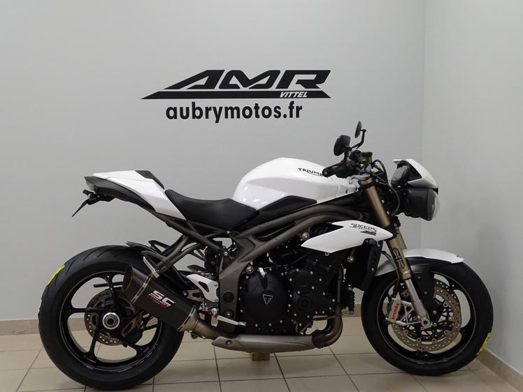 • TRIUMPH SPEED TRIPLE 1050 S EXCELLENT ETAT - COLORIS CRYSTAL WHITE - VENDUE NEUVE AMR VITTEL - ENTRETIENS REGULIERS AMR VITTEL - Dernier entretien complet fait AMR Vittel 0 km - Pneus neufs Rosso 3 - Support plaque immat court - Lèche roue arrière carbone - Capot de selle - Régulateur de vitesse - Tableau de bord TFT - Modèle 150 cv - Echappement bas Carbone SC Project - .1370.107.